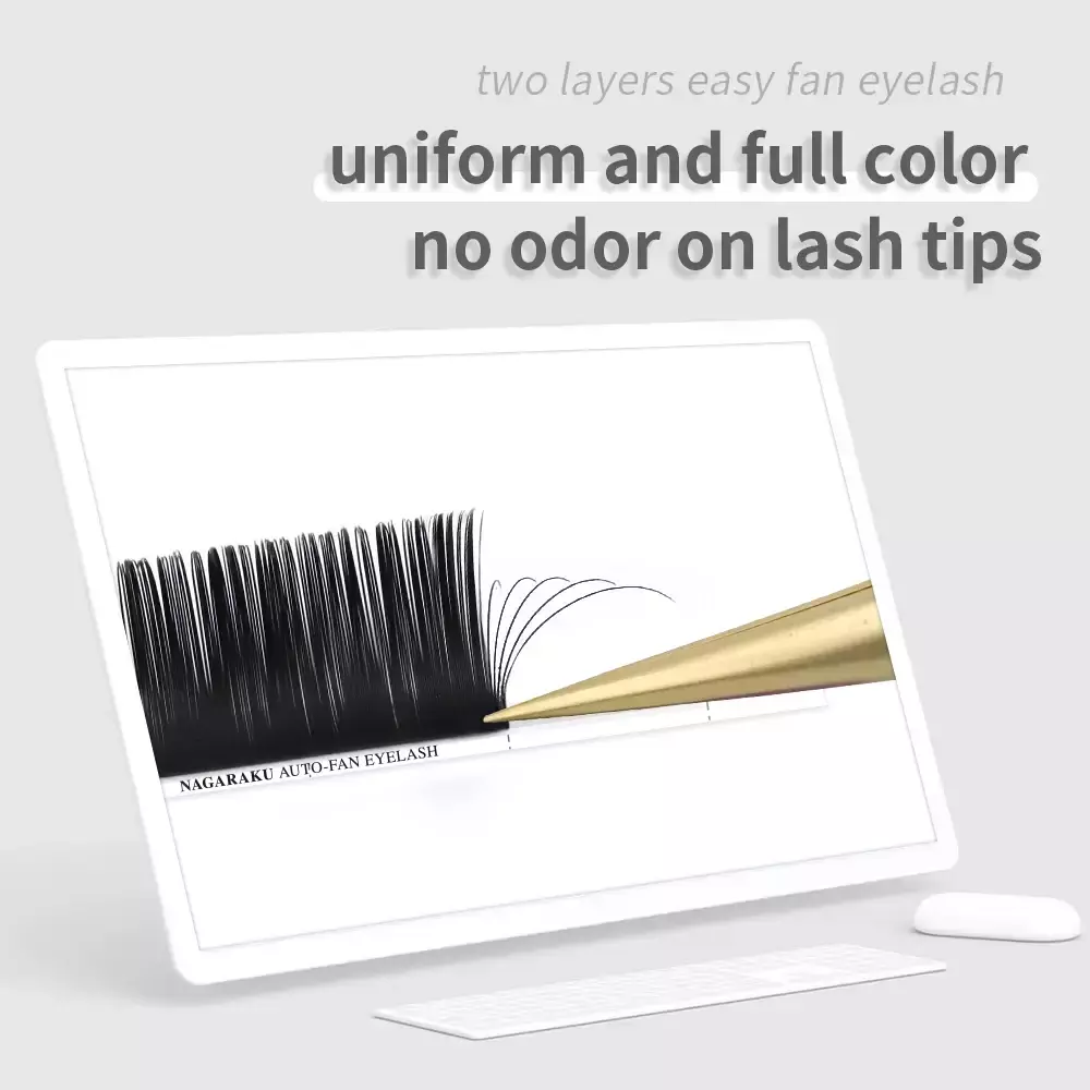 1, pegue 3-5 ou 5-7 cílios individuais e coloque-os na fita de cílios, use uma pinça para definir grandes fãs.